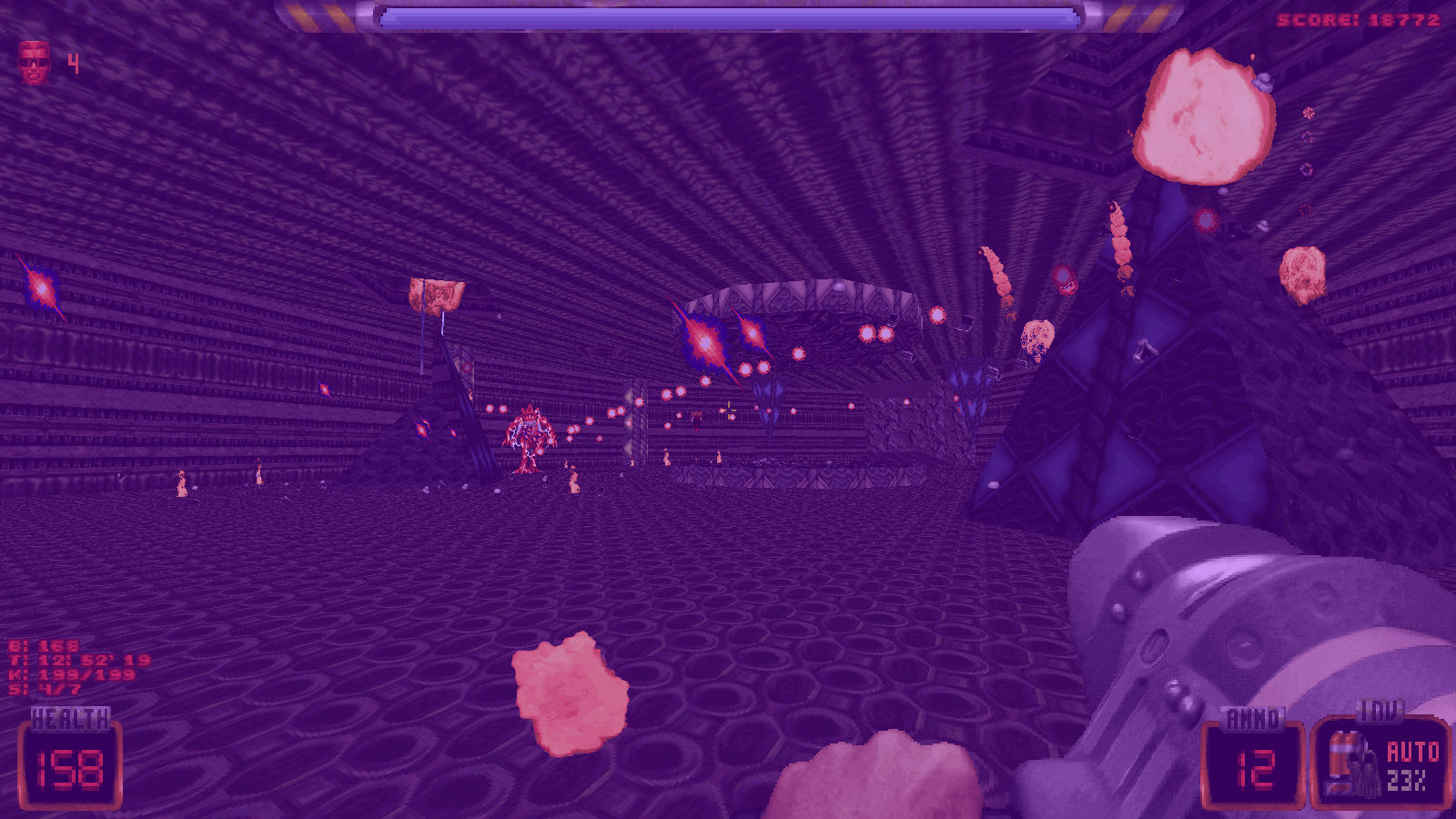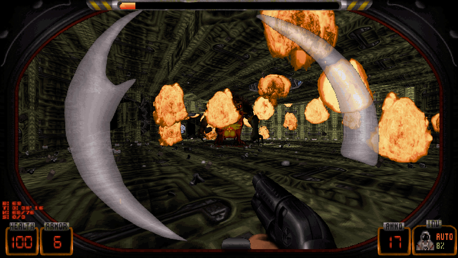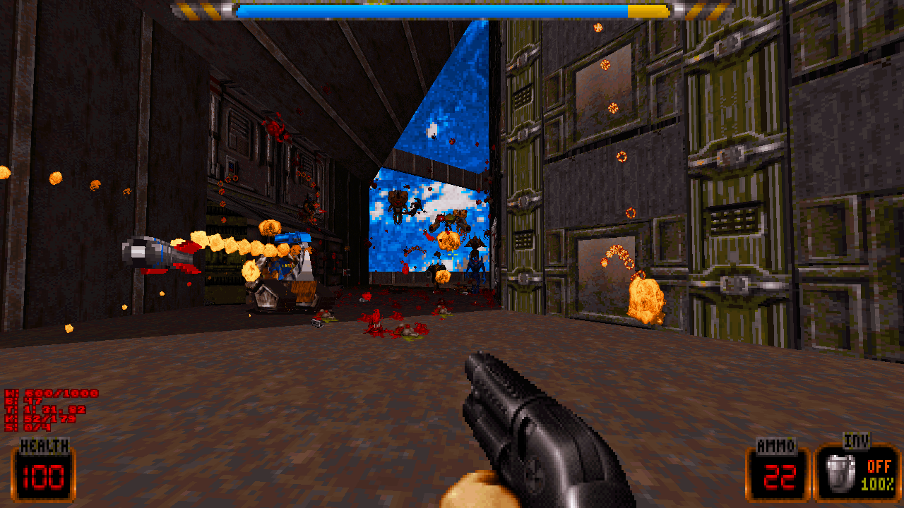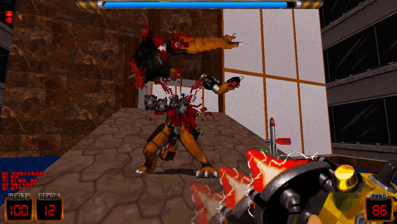 Fans of gore and Brutal Doom will enjoy the game's lasting debris, body parts, and blood. The highlight is hacking through aliens with a LASER CHAINSAW, alongside enhanced explosions. More with Brutality mode coming soon!