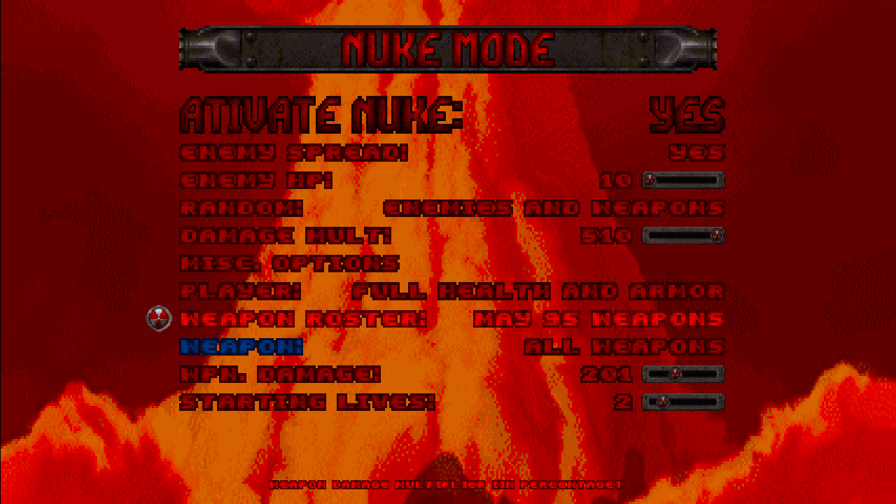 For a challenging replay, try NUKE mode: customize damage multipliers, alien numbers, randomize weapons and enemies, and use Duke's May 95 weapon roster. Play your way!