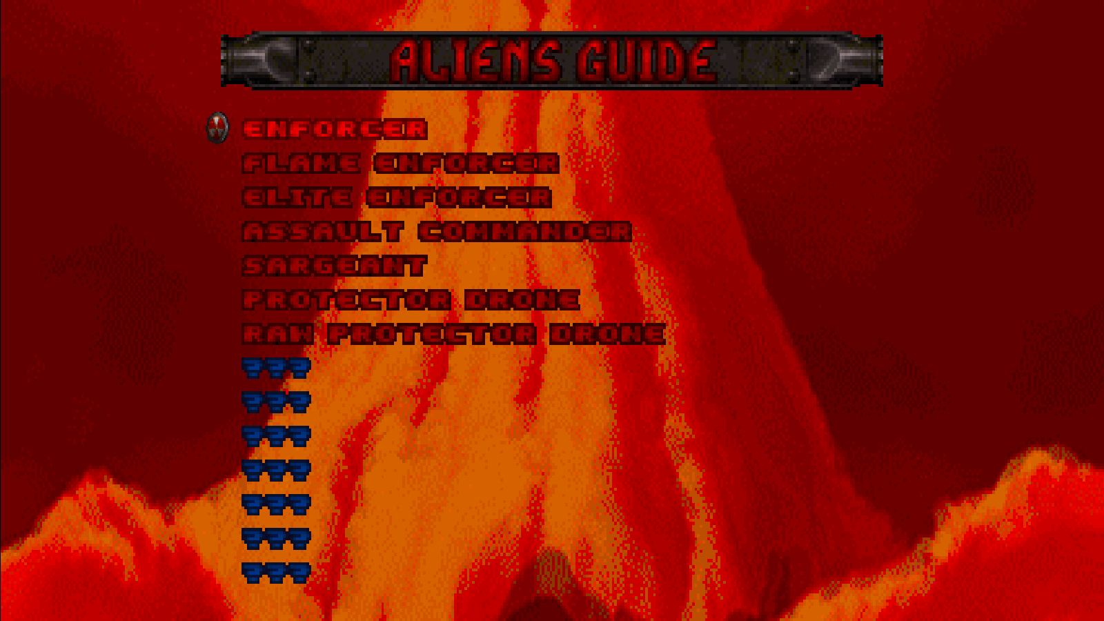 The Robot Trooper, Punk Pig Cop, Red Stripped Enforcer, Beta Overlord, and others return, challenging Duke. Tip: each alien has a weapon weakness, sometimes leading to one-hit kills, so experiment to discover them.